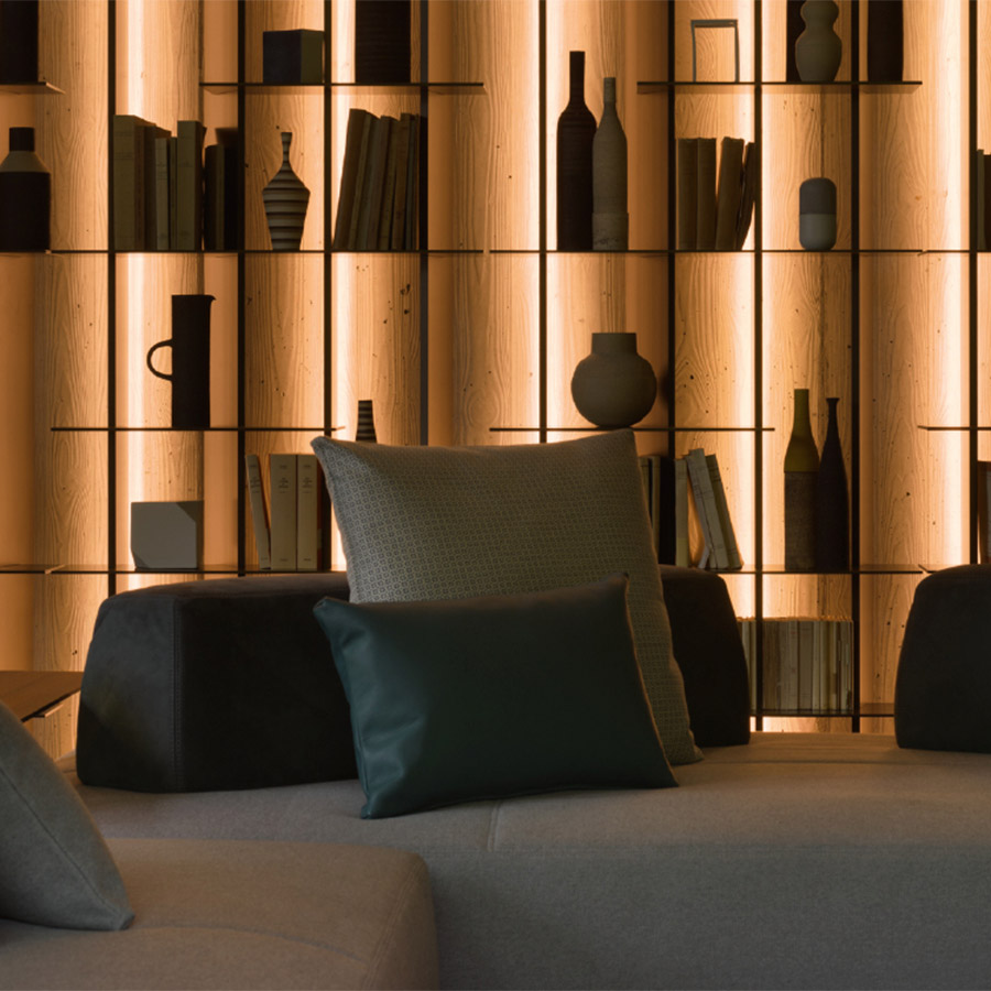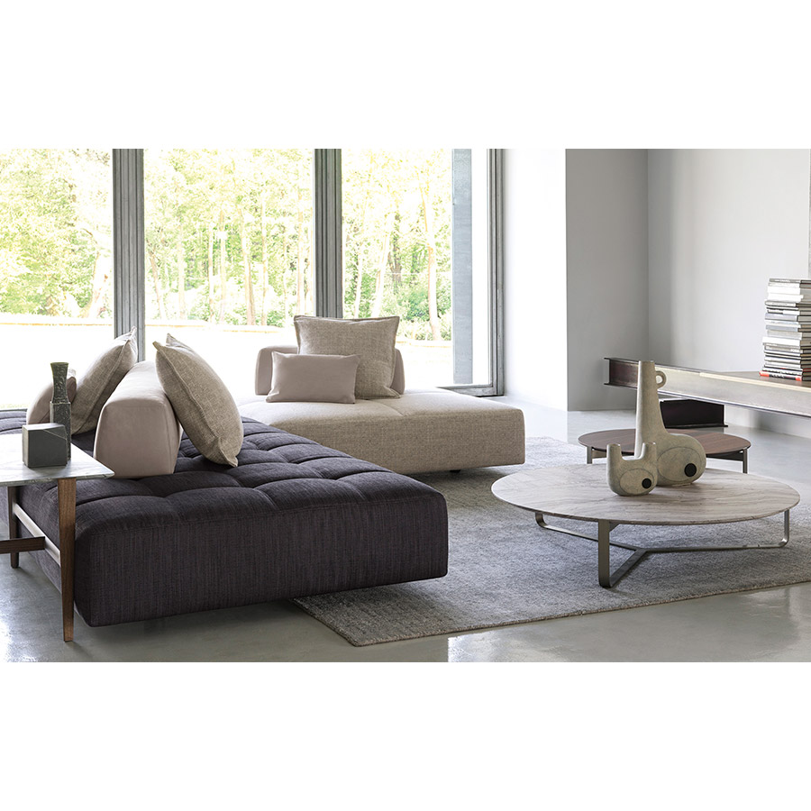 Massimo CastagnaLa profundidad de los elementos permite contar con asientos hacia las dos caras, además del uso como chaise-longue o cómoda cama.