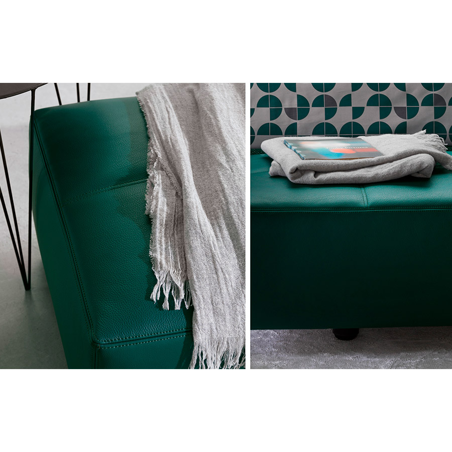 El revestimiento de la base está disponible en dos versiones: con pespunte rectangular ancho o bien con capitoné.