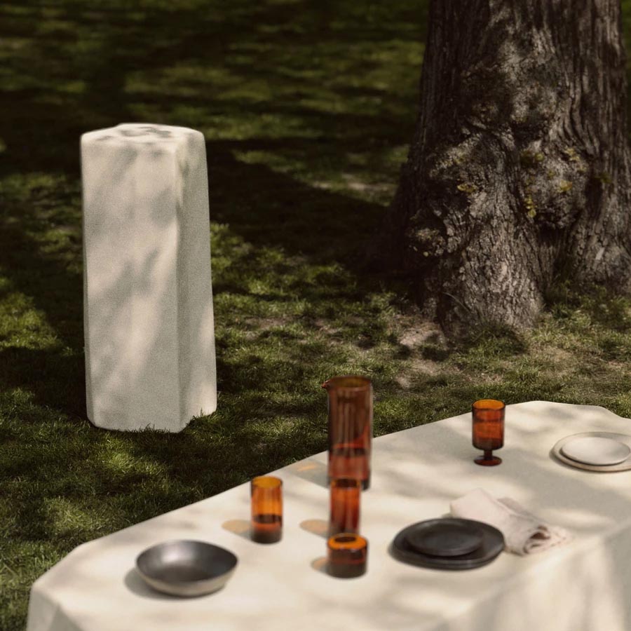 La colección Staffa de ferm LIVING, acertadamente nombrada con la antigua palabra nórdica para ‘pilar’, cuenta con una gama de piezas exquisitamente elaboradas, cada una hecha de concreto reforzado con fibra de vidrio utilizando un proceso de fundición único. El resultado es una colección de artículos que se asemejan a bloques de piedra tallada, con sus formas rugosas e irregulares que aumentan su belleza natural.