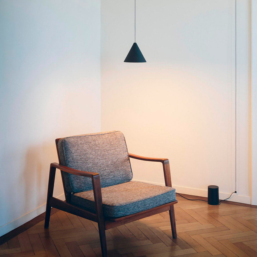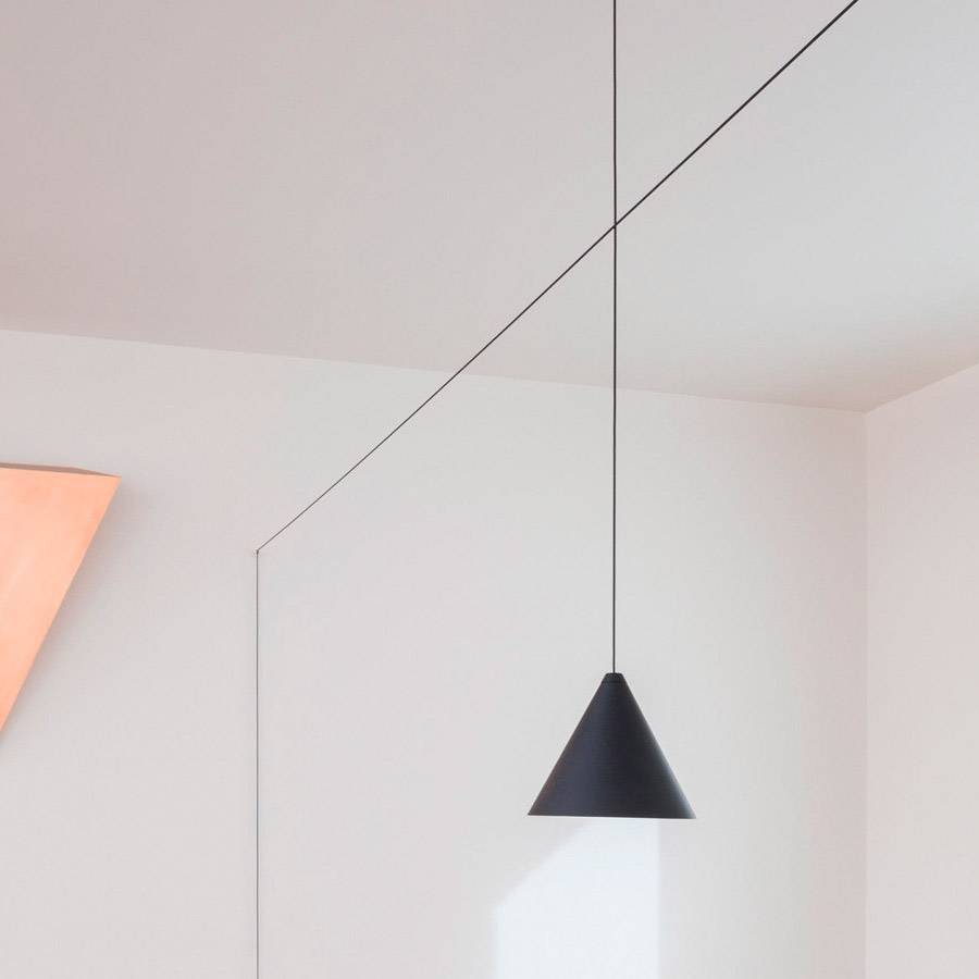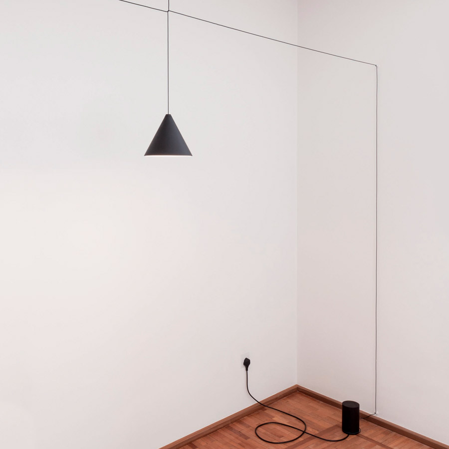La lámpara de Flos String Light Cone divide el espacio de una forma arquitectónica, gracias a la innovadora visión de Michael Anastassiades. El diseño de String Light se inspira en la iluminación de los espacios al aire libre, como una por ejemplo la plaza de pueblo con hileras de luces que cuelgan en un cuadrado desde cuatro postes. Al mismo tiempo, es una lámpara práctica que tiene la capacidad de llevar la luz donde se desee sin rejirse por la ubicación de los puntos de electricidad. Las luces de cuerda traducen esta visión y disciplina en un ambiente interior.
