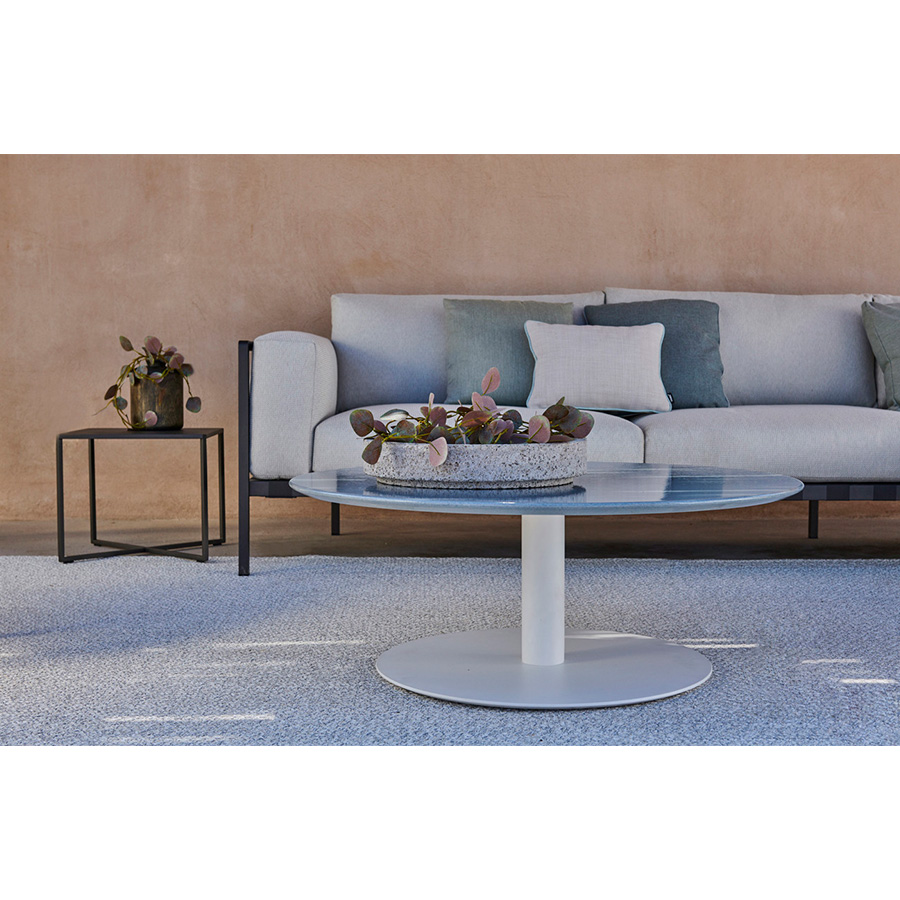 La capa de esmalte hace que la mesa sea resistente al agua, al calor, al hielo, a los rayos UV y a las manchas. Esta mesa atemporal está disponible en varias alturas y tamaños y combina muy bien con diversos diseños de la colección de Tribù.