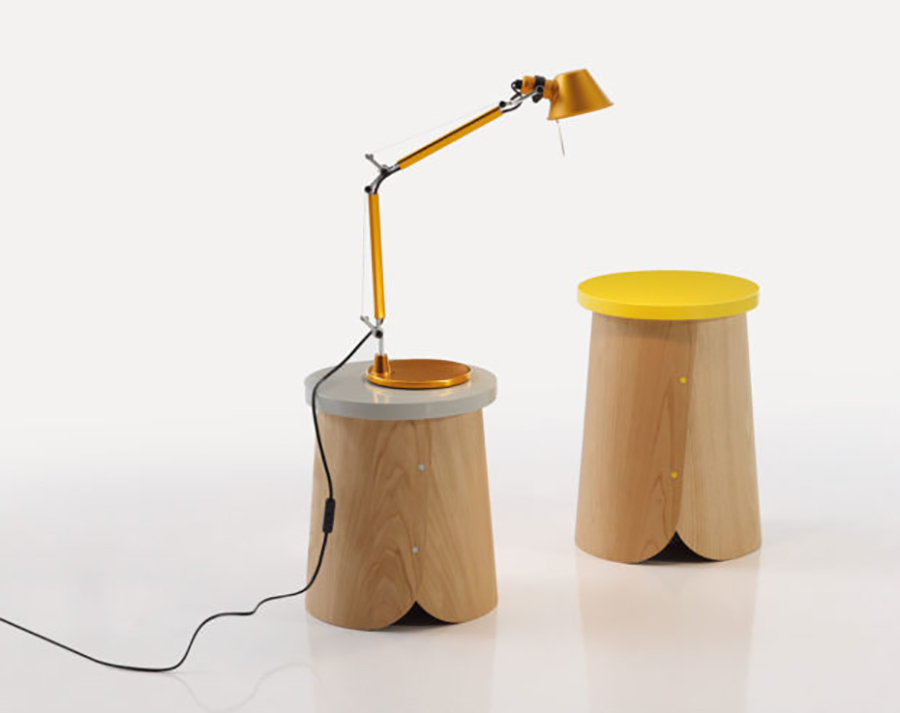 NadadoraIsaac Piñeiro, del estudio Nadadora nos propone unas simpáticas banquetas y mesitas cuya base está inspirada en los trobos, unas colmenas hechas con troncos de madera, muy típicas en el norte de la Península Ibérica.