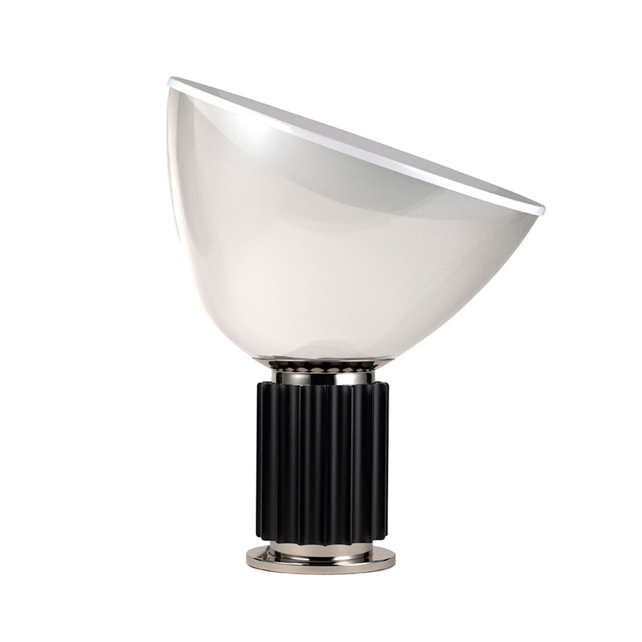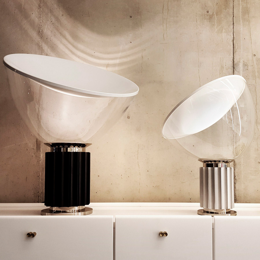 Diseñada por los hermanos Castiglioni para Flos en 1962, la lámpara de mesa LED Flos Taccia es una pieza de diseño práctica y elegante. Su luz indirecta LED que emana del vidrio soplado aporta una iluminación sutil al espacio que la rodea, mientras que una base de metal niquelado agrega peso y sensación de calidad. Cuenta con un cable de 220 cm que permite muchas opciones de disposición y un interruptor de atenuación con un rango de iluminación del 10% al 100%.