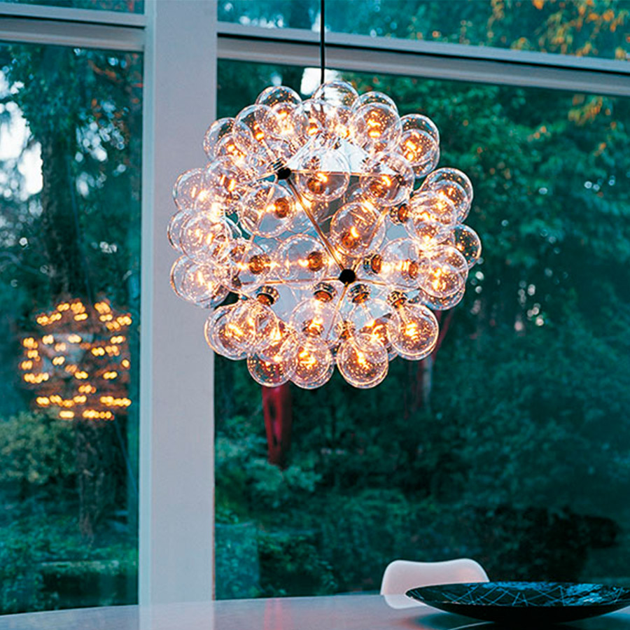 La lámpara de suspensión Taraxacum fue diseñada en 1988 por Achille Castiglioni y es tan contemporánea ahora como lo fué entonces.