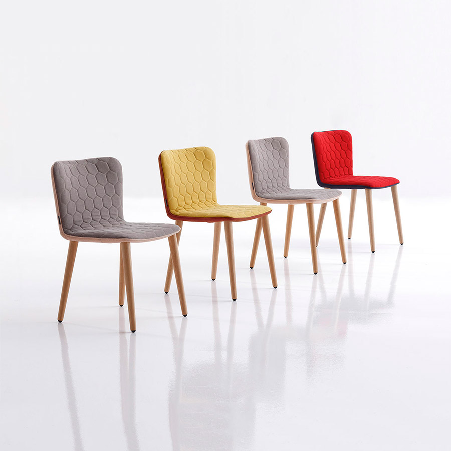EstudihacJosé Manuel Ferrero, ha reducido la butaca Tea a su mínima expresión. El resultado: una ligera y mullida silla con esbeltas patas de roble. La forma curvada del respaldo favorece una postura ergonómica y proporciona una sentada de larga duración. Su delgada estructura es sólida y esponjosa gracias al poliuretano inyectado. Al igual que el resto de piezas de la colección Tea, las sillas incorporan el acolchado hexagonal y la posibilidad de crear piezas bicolor. Las patas también están disponibles en haya.