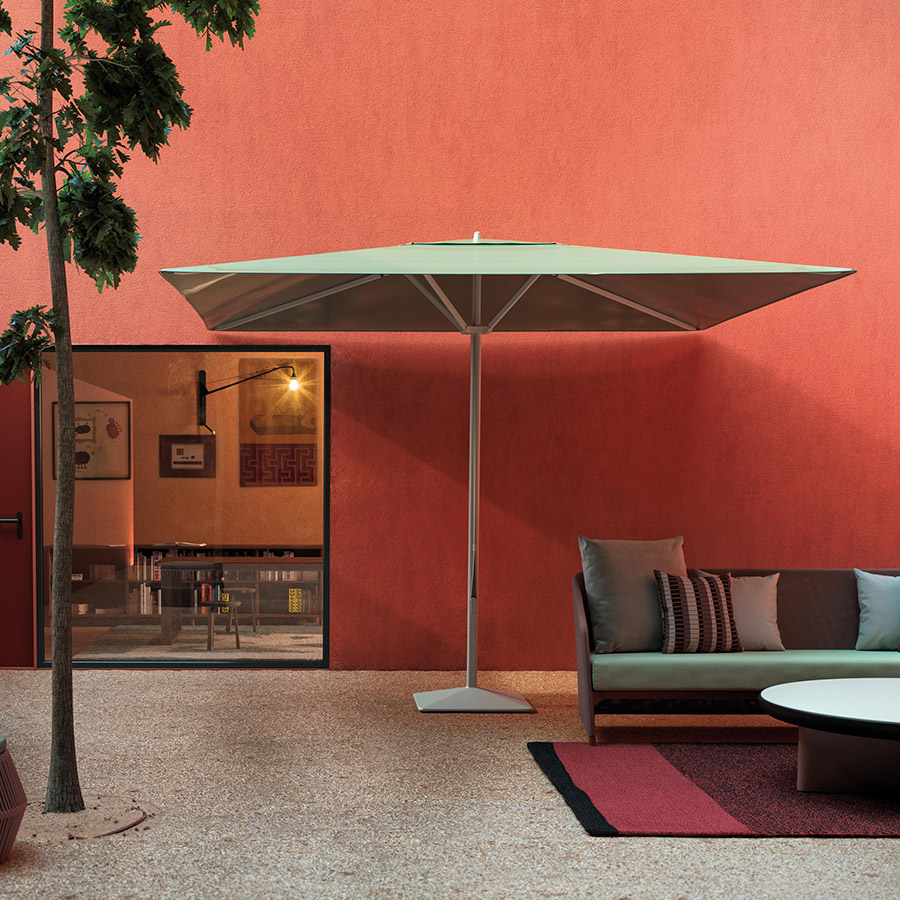 Konstantin GrcicLa sombrilla Telescopic está disponible en distintas medidas y colores. Cómoda de usar y fabricado con materiales inteligentes, este parasol para exteriores combina calidad y diseño en todas sus versiones. Hay dos opciones; una básica con sistema de poleas manual y otro con un pistón de gas integrado para abrir y cerrar. La base se puede pedir con o sin ruedas.