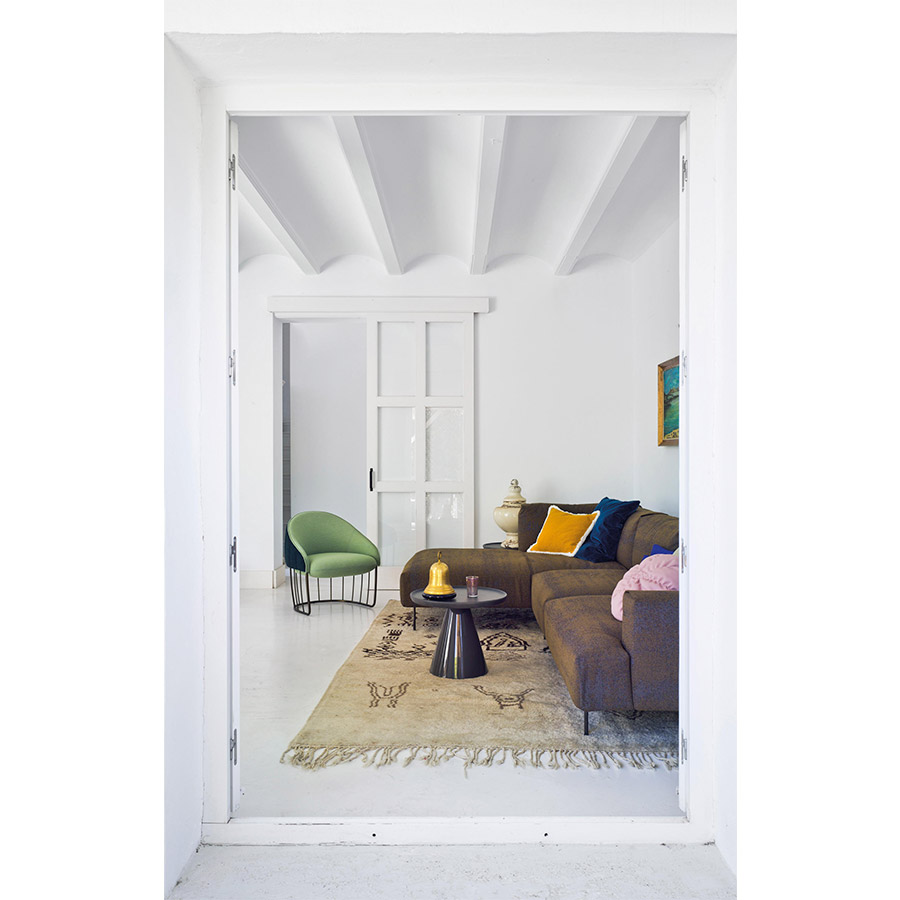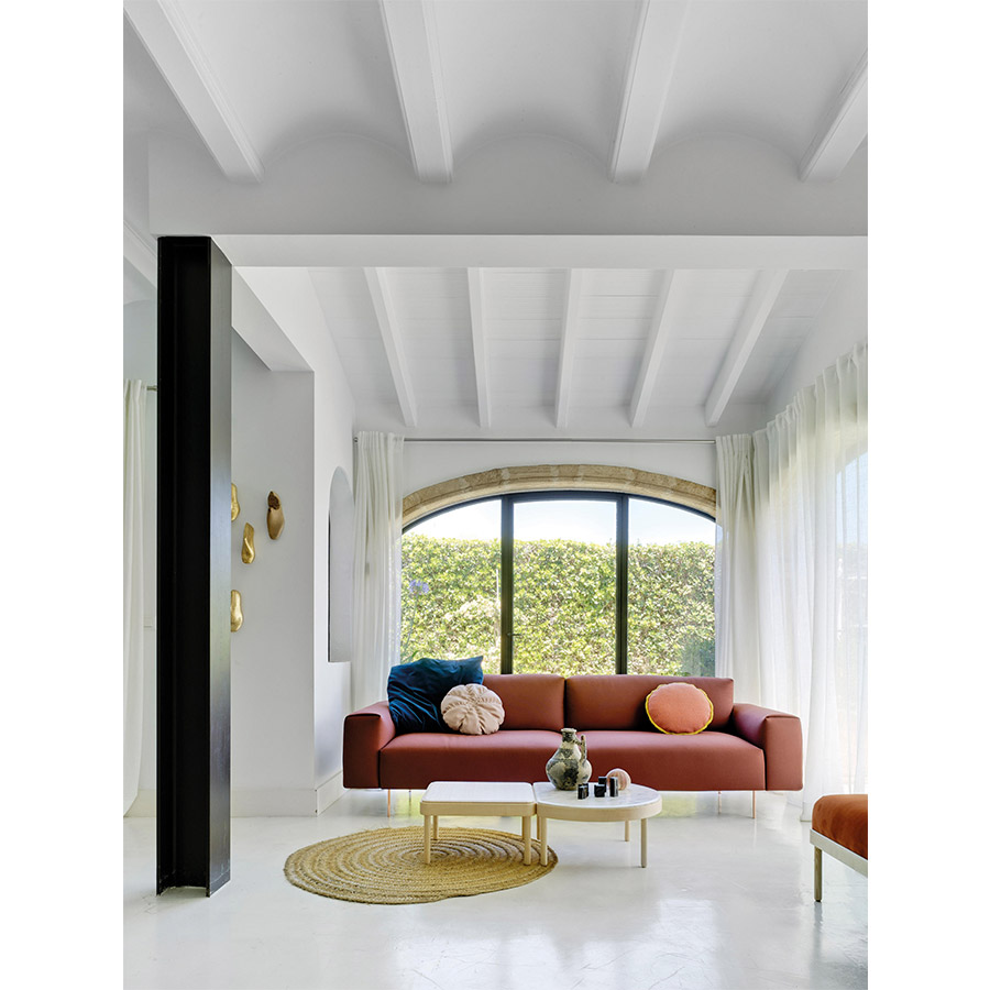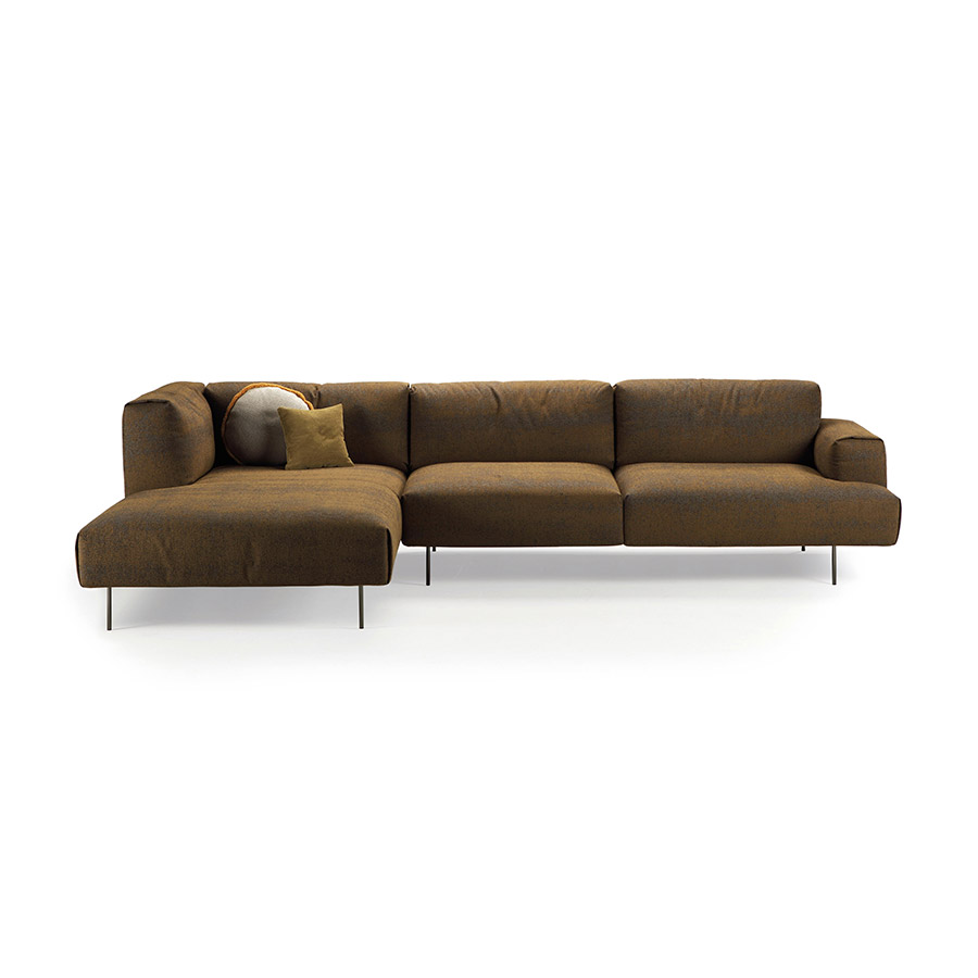 Tiptoe es también un sofá confortable e irresistiblemente hogareño. Su fondo reducido y la variedad de medidas para módulos y brazos, así como el gran número de piezas creadas para adaptarse a necesidades reales, acentúan el enfoque doméstico. La mezcla de fibra y visco-elástica de sus almohadas proporciona una sentada placentera. Las composiciones con chaises longues son perfectas para inundarlas de cojines.