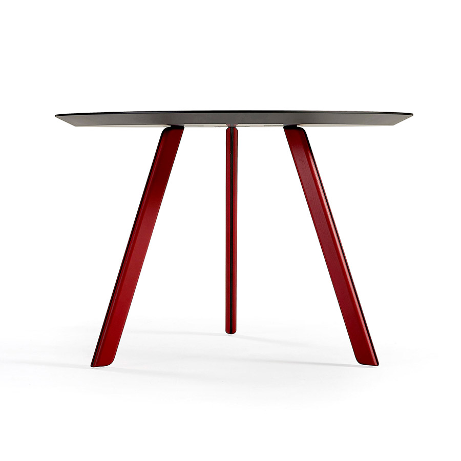 Los sobres de las mesas pueden ser redondos, con tres patas que se unen en el centro, o bien rectangulares con una pata en cada esquina. Existen dos medidas para cada opción.