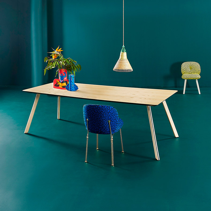 Isaac PiñeiroLa mesa Tortuga es un diseño de líneas muy limpias, atemporal y elegante, en el que la madera de fresno toma protagonismo a través de su veteada consistencia; y la sutil estructura de metal aporta textura y perfila las líneas con su rotundo color negro.