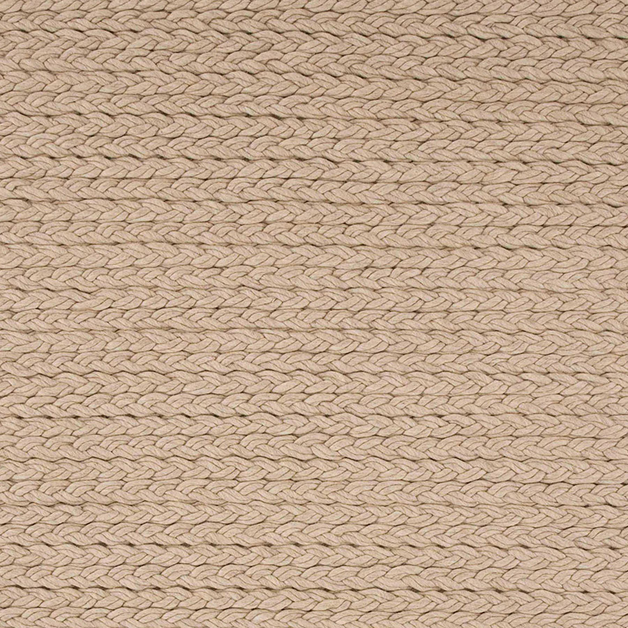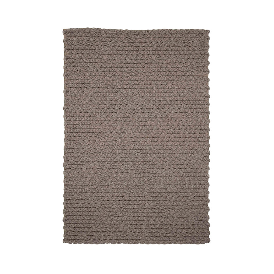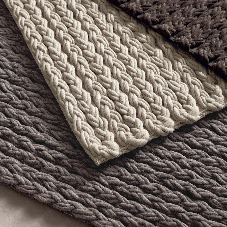 El trenzado de lana gruesa que presenta esta alfombra en su cara superior busca transmitir una atmósfera natural y rústica de estilo contemporáneo, en alusión al aparente entrelazado de las espigas silvestres. Su voluminosa textura se elabora con lana de color marrón grisáceo. Se puede adquirir también en formato redondo, así como en color crudo o marrón.