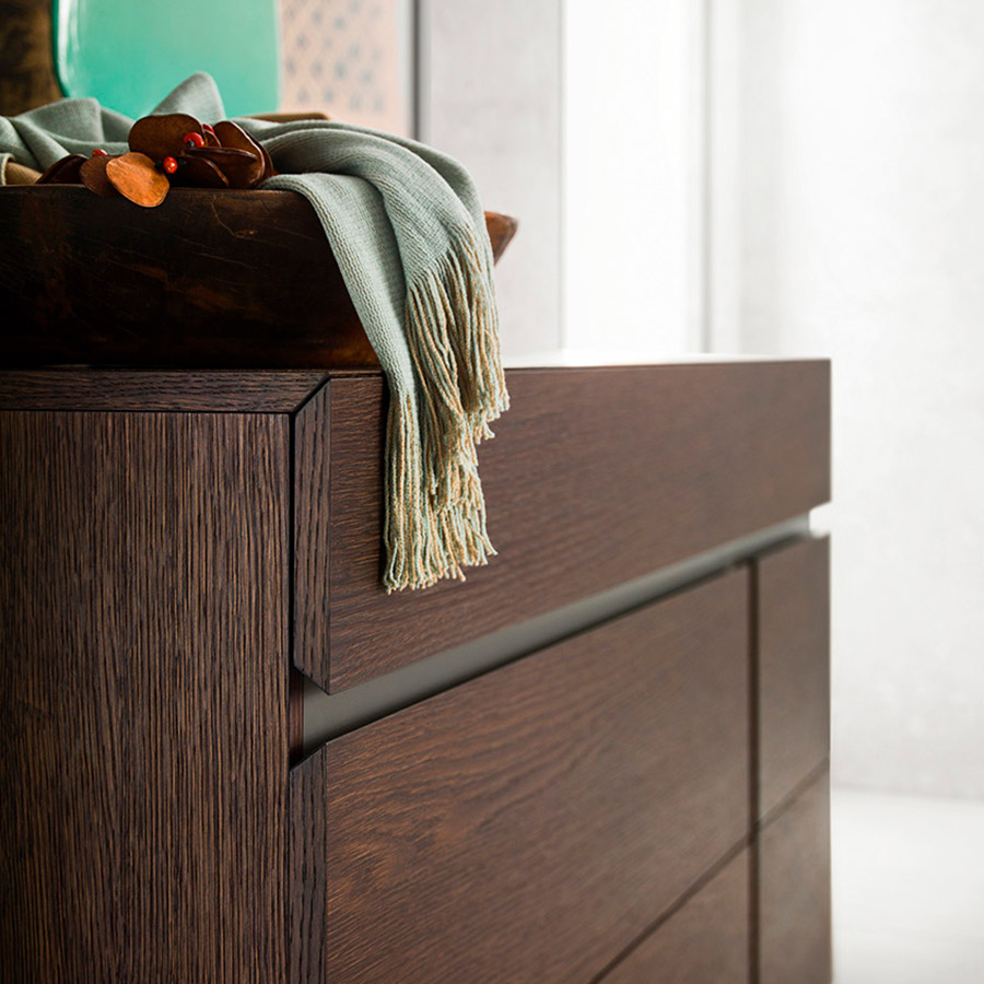R.D.A.Familia de mesitas, comodas, cajoneras con multitud de medidas y acabados, de líneas elegantes para adaptarse a todos los espacios. Se caracteriza por su singular tirador, en bicolor.