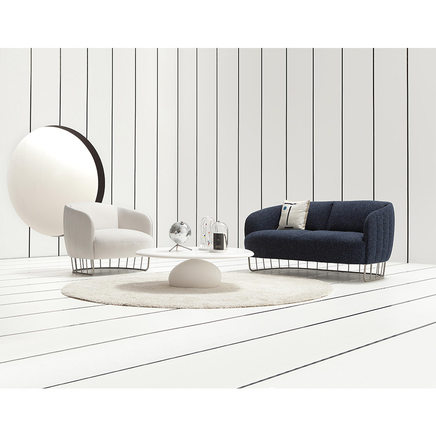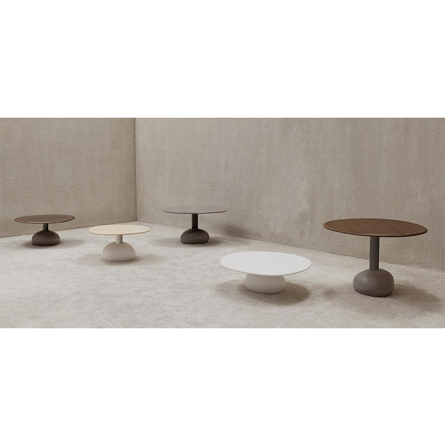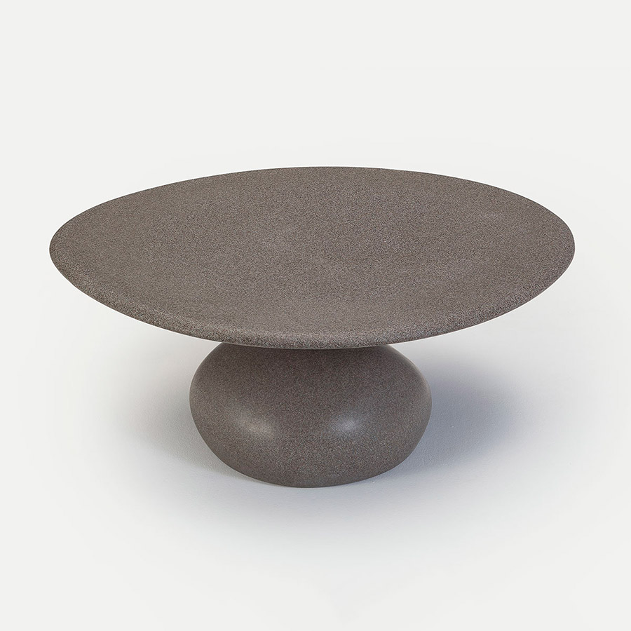 Sebastian HerknerComo ya hiciera con Talo, Sebastian se inspira de nuevo en la naturaleza. Un innovador y flexible material, compuesto de piedra y resina, permite modelar las bases para emular un canto rodado. Las tapas también simulan las formas irregulares y caprichosas de la erosión.