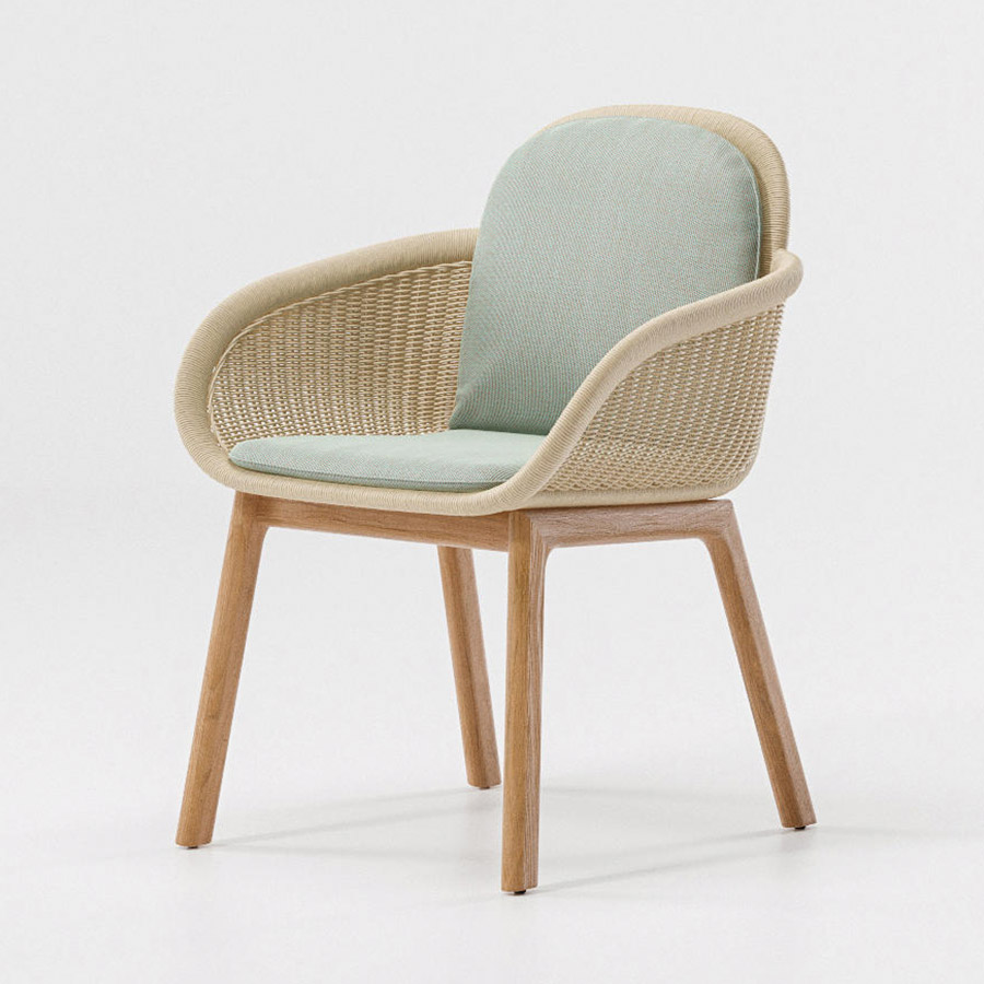 Patricia UrquiolaVimini, llamada asi porque es mimbre en italiano y también el nombre de una preciosa isla. Vimini diseñado por Patricia Urquiola para Kettal es un sofá con patas en madera de teca y carcasa en fibra trenzada. Cómodos cojines en tejido disponible en diferentes colores.