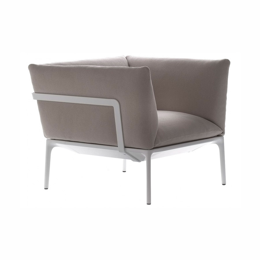 La estructura es de aluminio y «abraza» los sofisticados cojines rellenos de algodón o plumas. Ofreciendo la oportunidad de jugar con telas, acabados y colores, Yale con su fuerte identidad se adapta a todo tipo de interiores, tanto residenciales como contract. Tal elegancia, purificada de cualquier manierismo y centrada en la esencia del producto, también se puede encontrar en Yale X, Yale Bed y Yale Low Table.