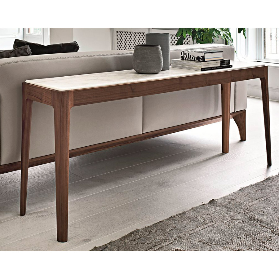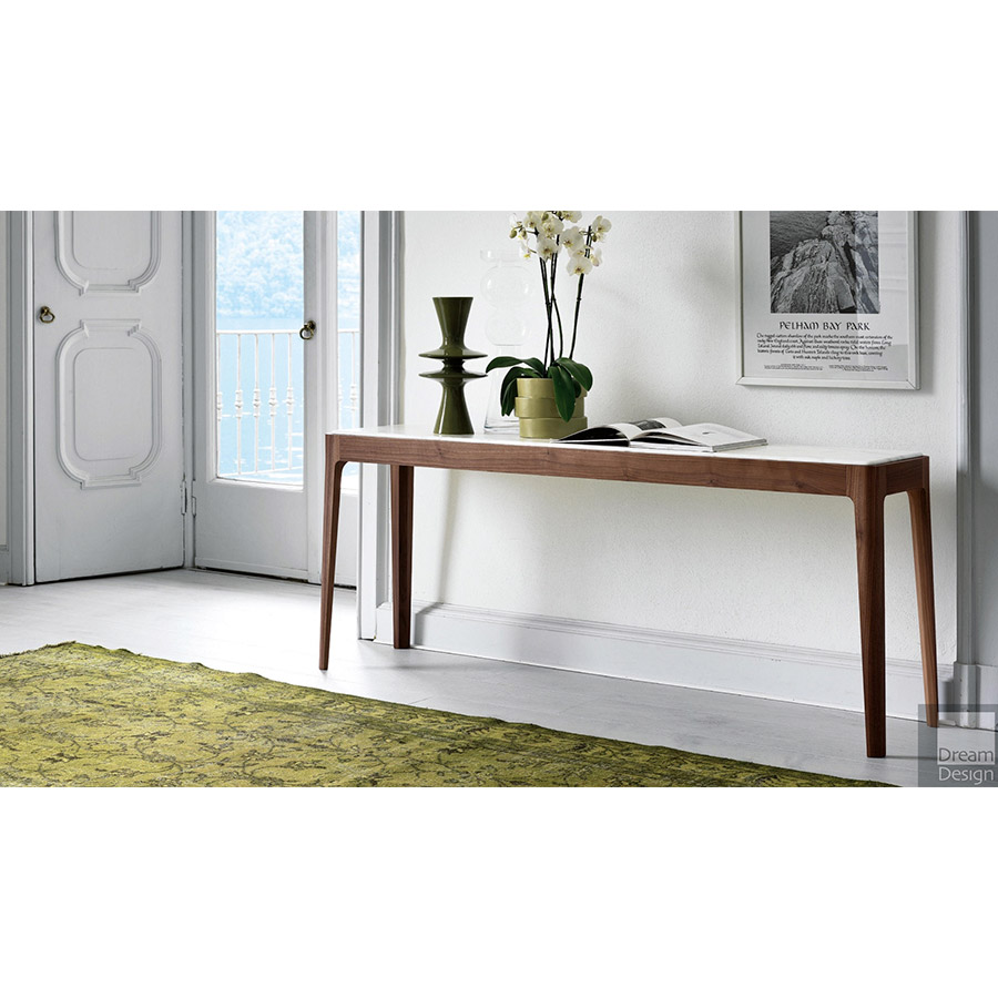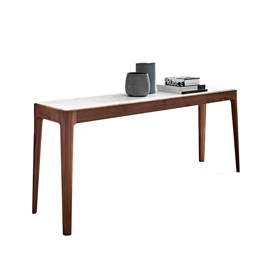 C. BallabioConsola con estructura en nogal canaletta macizo y tapa de madera, mármol o de cristal al ácido retrobarnizado.