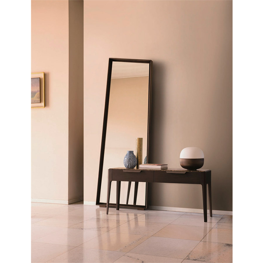 C. BallabioConsola con dos cajones con estructura de nogal canaletta macizo y tapa en madera, en mármol o en cristal al ácido retrobarnizado.