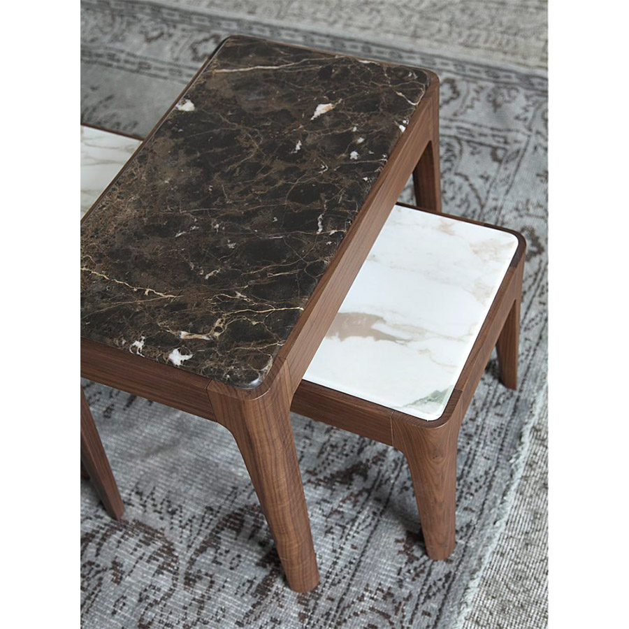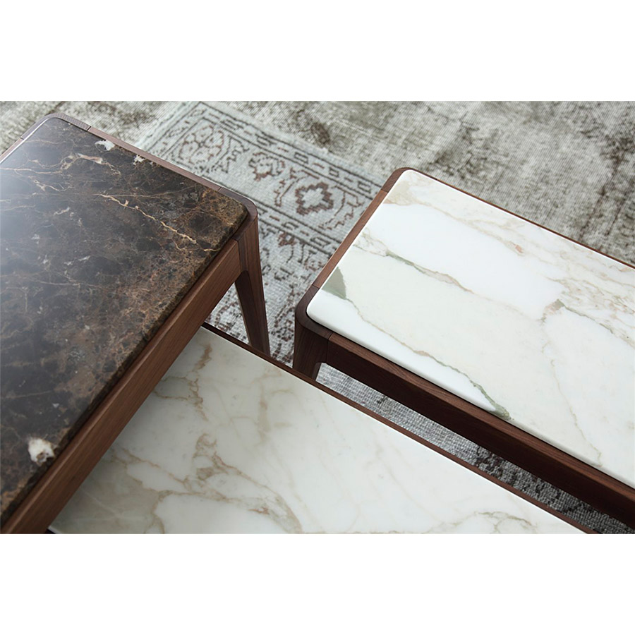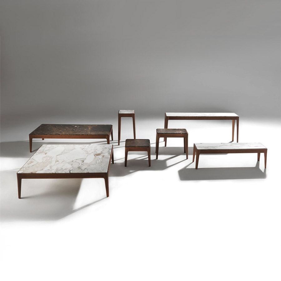 C. BallabioSerie de mesas de centro o auxiliares o de consolas de varias dimensiones. Estructura de nogal canaletta macizo y tapa de madera, de mármol o de cristal retrobarnizado. Ziggy nace desde la simplicidad y perfección, manteniendo el carácter artesanal que tanto caracteriza a Porada. Disponible en una amplísima variedad de medidas y acabados, se adapta a todos los ambientes.